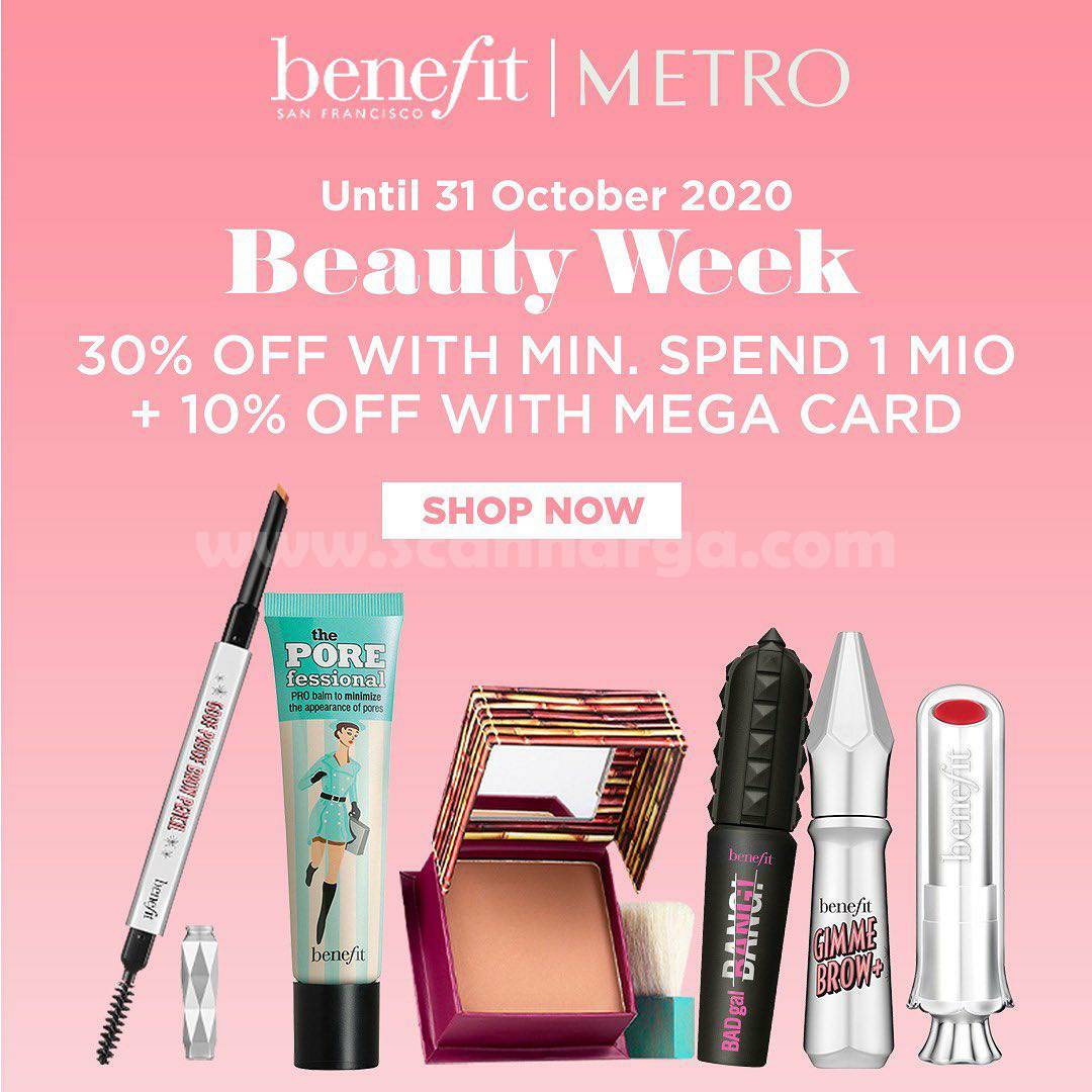 METRO Depstore BENEFIT October Sale and get Discount up to 30% + 10% MEGA Credit Card* BEAUTY WEEK berlaku sd. 31 Oktober 2020